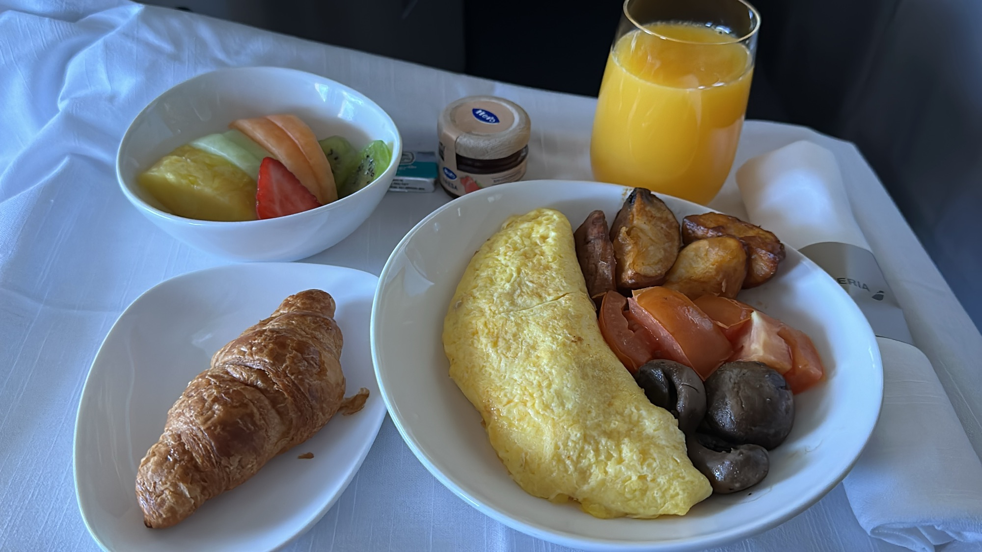 About 90 minutes before landing, a second meal was served. I chose the omelette with chorizo, paired with fresh fruit and warm bread. While it wasn’t particularly memorable, it was satisfying end to the 11-hour flight.