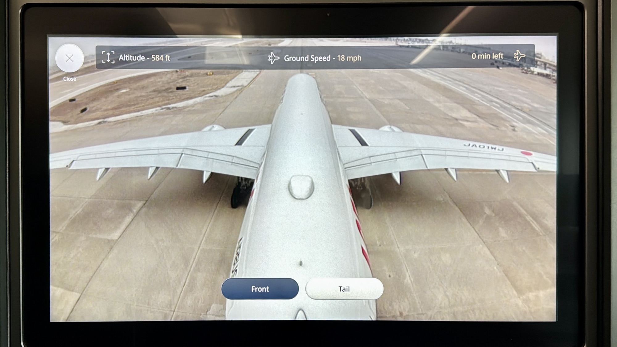 While the content library may not rival the extensive offerings of carriers like Qatar Airways or Emirates, JAL still provides a well-rounded selection of movies, TV shows, audio programs, games, and even live TV. The system also features a sleek, interactive moving map and three external camera views—an aviation geek’s dream.