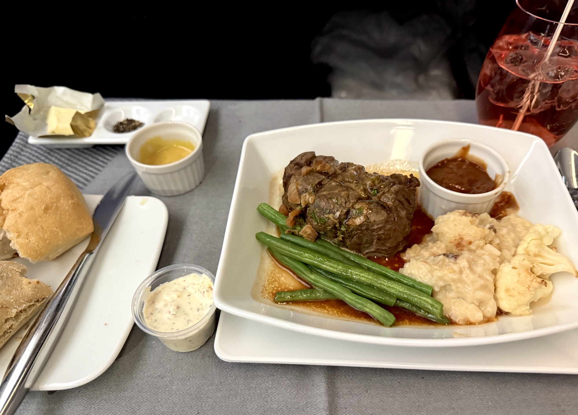 We were also pleasantly surprised by the in-flight dining. Despite some initial doubts about catering from DFW, each meal exceeded expectations—beautifully plated and full of rich, satisfying flavors.
