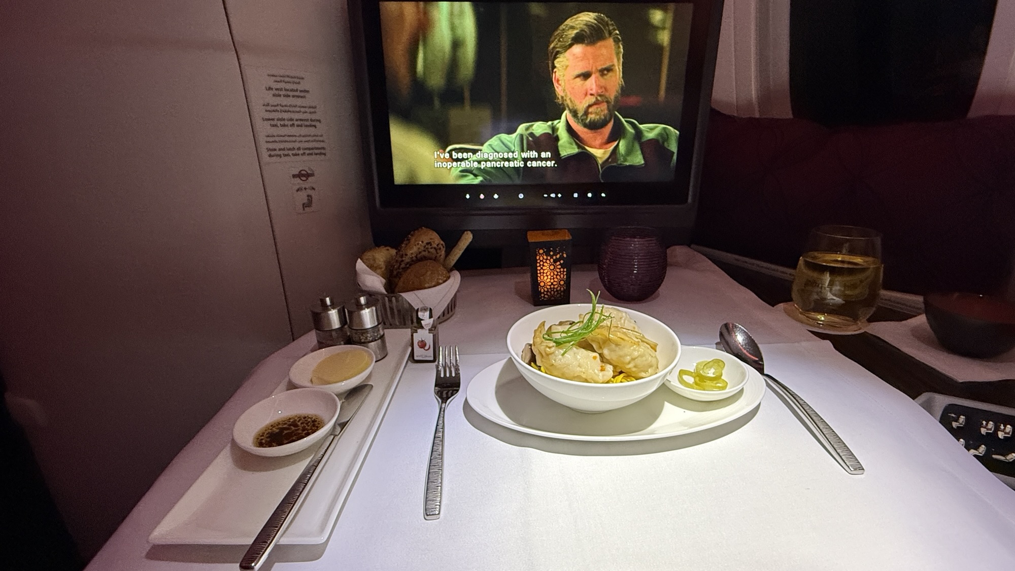 The Catering – The catering out of Doha was excellent and very much in line with what we’ve come to expect from Qatar Airways. The dine-on-demand setup gave us the flexibility to eat on our own schedule, which really added to the personalized feel of the experience. After takeoff, we started with drinks and decided to begin our meal about two hours into the flight.