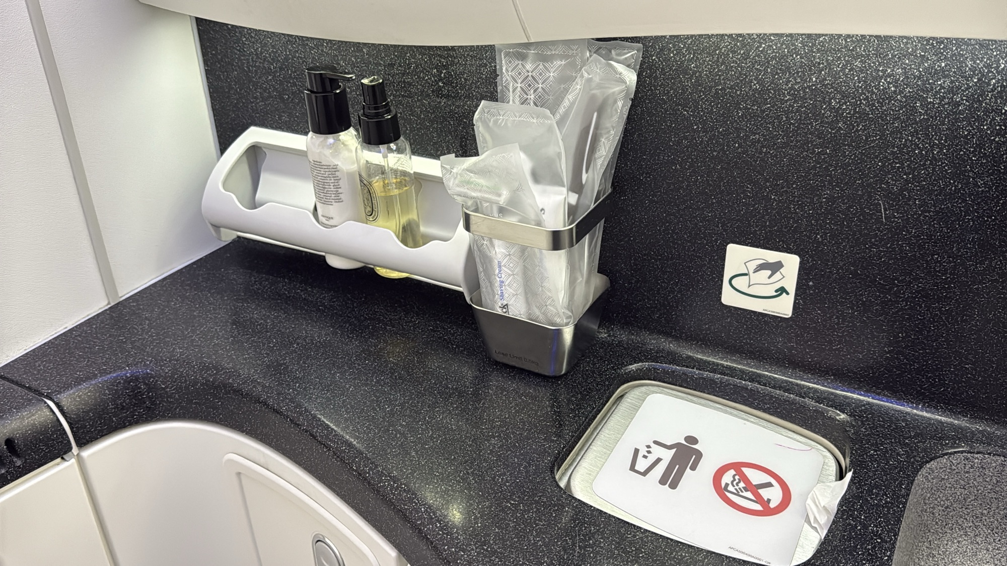 The lavatories were spotless throughout the flight and thoughtfully stocked with extras like facial mist, hand lotion, razors, and toothbrushes—everything you’d want to freshen up and feel your best mid-journey.