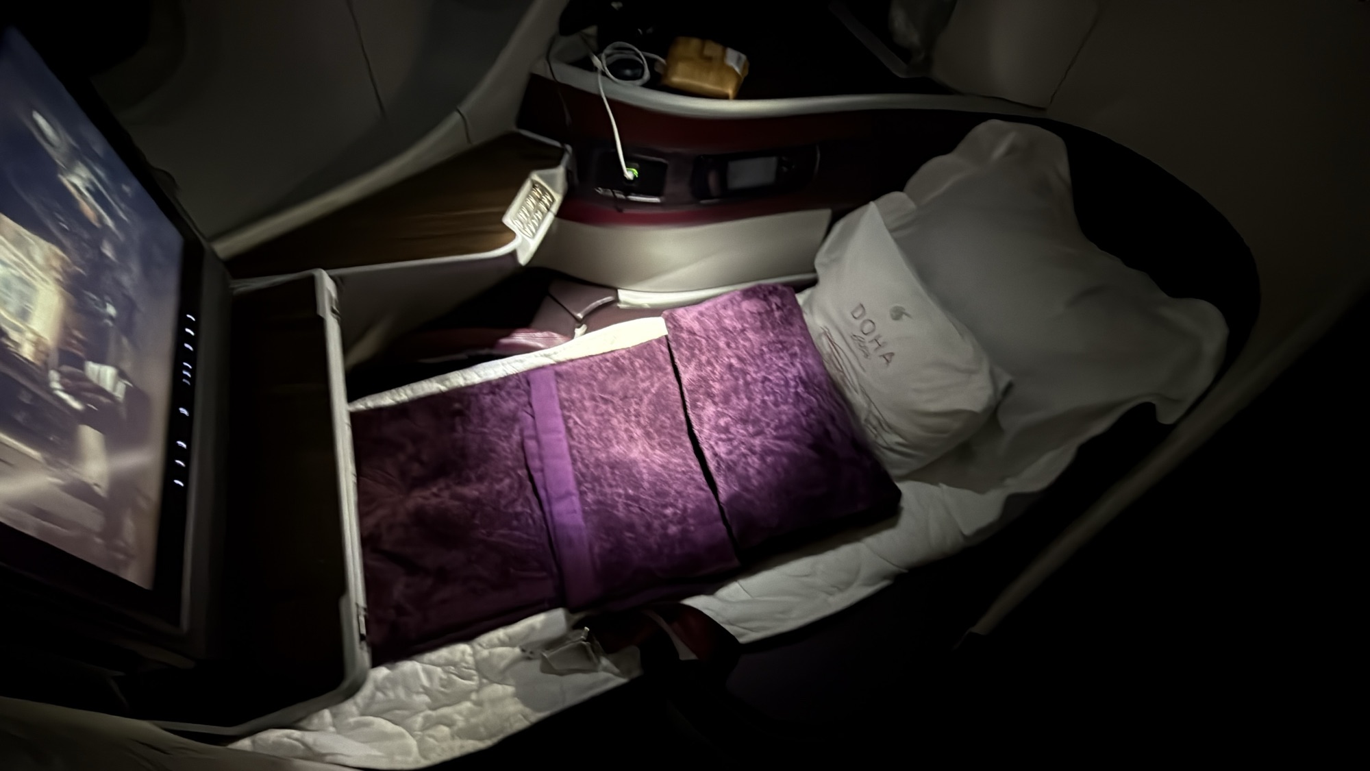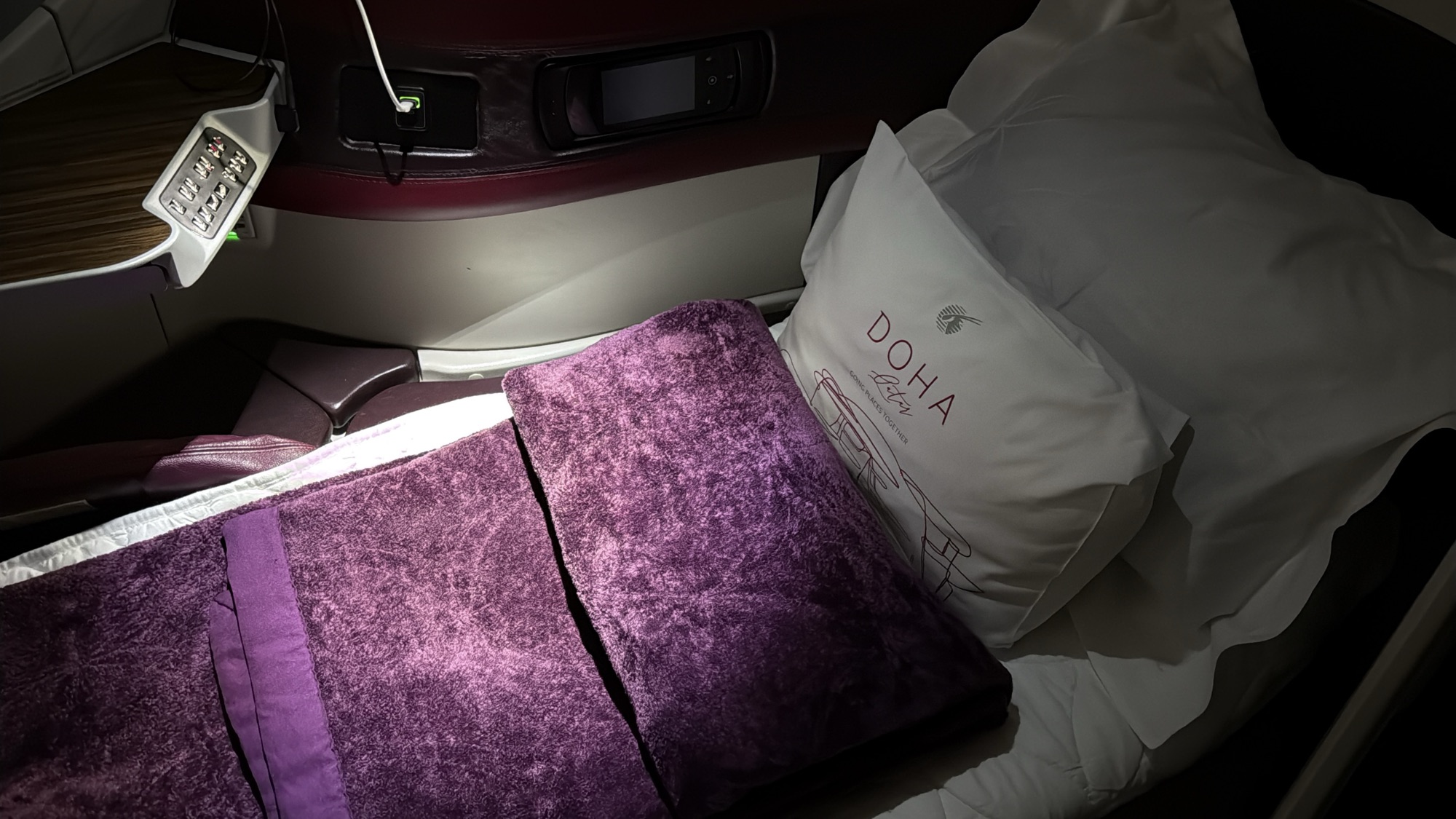 The Service – The crew was warm, attentive, and genuinely eager to make the journey a memorable one. From the welcome drinks and refreshing towels before takeoff to the beautifully presented meals, every detail reflected the airline’s commitment to quality service. When we were ready to sleep, the crew offered turndown service—adding mattress pads to our beds and making sure we were comfortable. They were quick to respond to any request and added thoughtful touches throughout the flight that really made a difference.