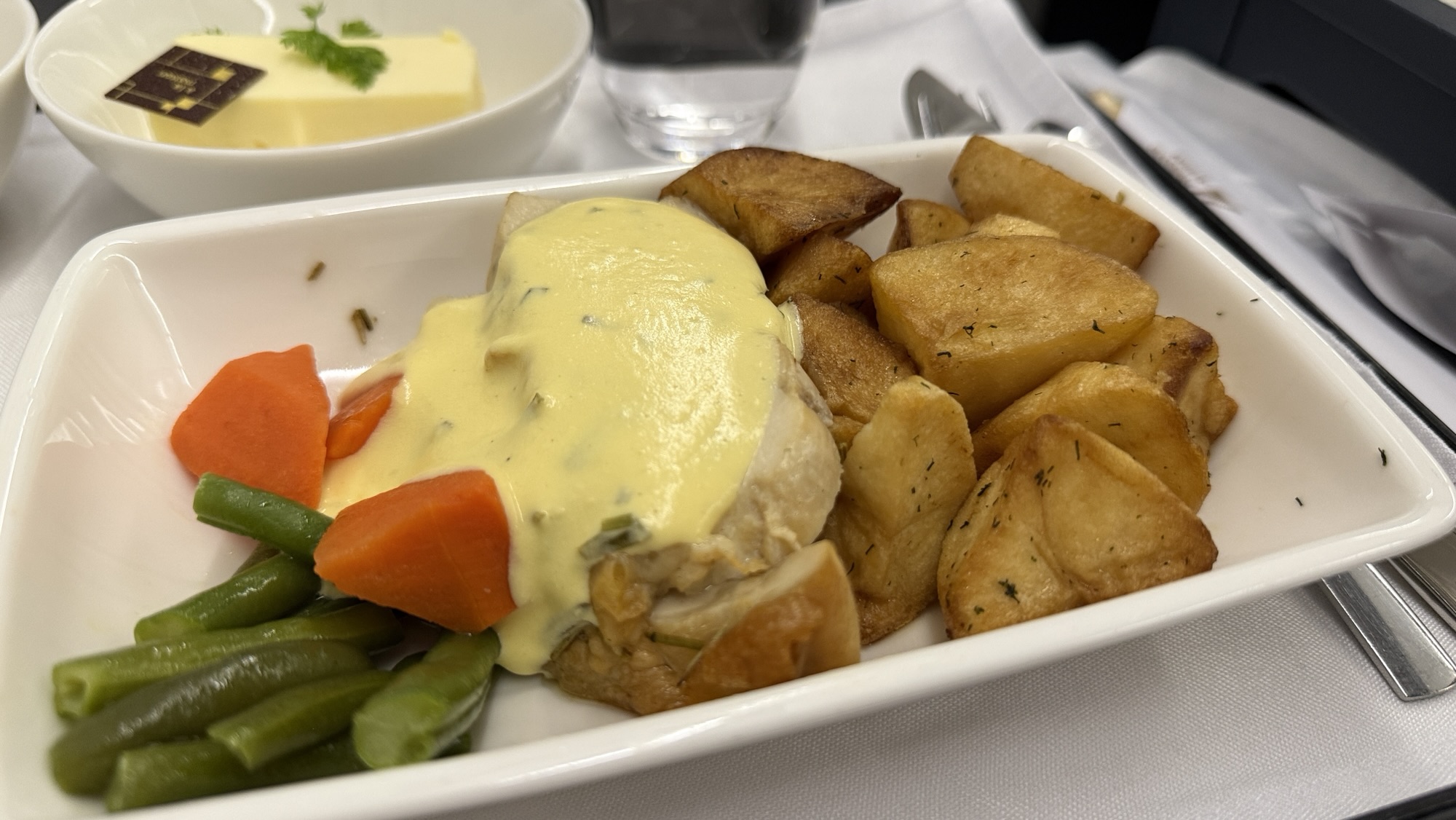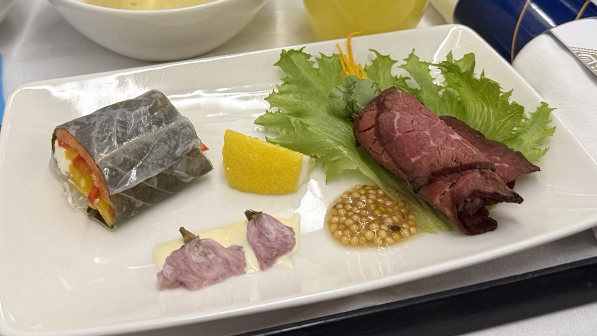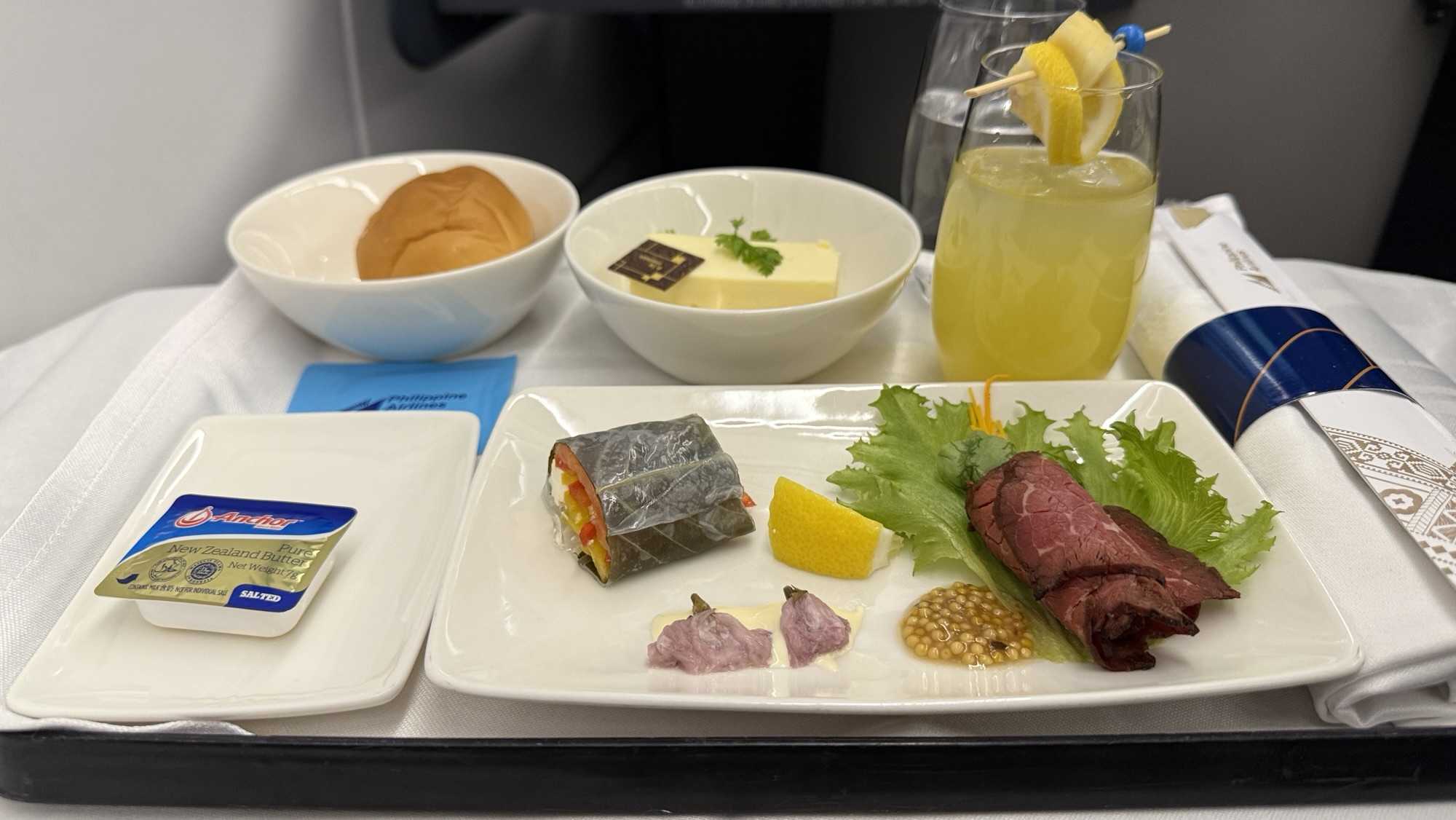 Although if I’m being honest, something felt a bit off. While the purser and another flight attendant were wonderful, one of the three crew members serving the business class cabin seemed to be having a bad day. He didn’t smile and had a noticeably condescending tone. While he did perform all his duties—offering pre-departure drinks, serving our meals, and even offering additional dessert—the lack of warmth and borderline rude demeanor was a stark contrast to the usual PAL standard. Smiles, it seems, were an extra charge.