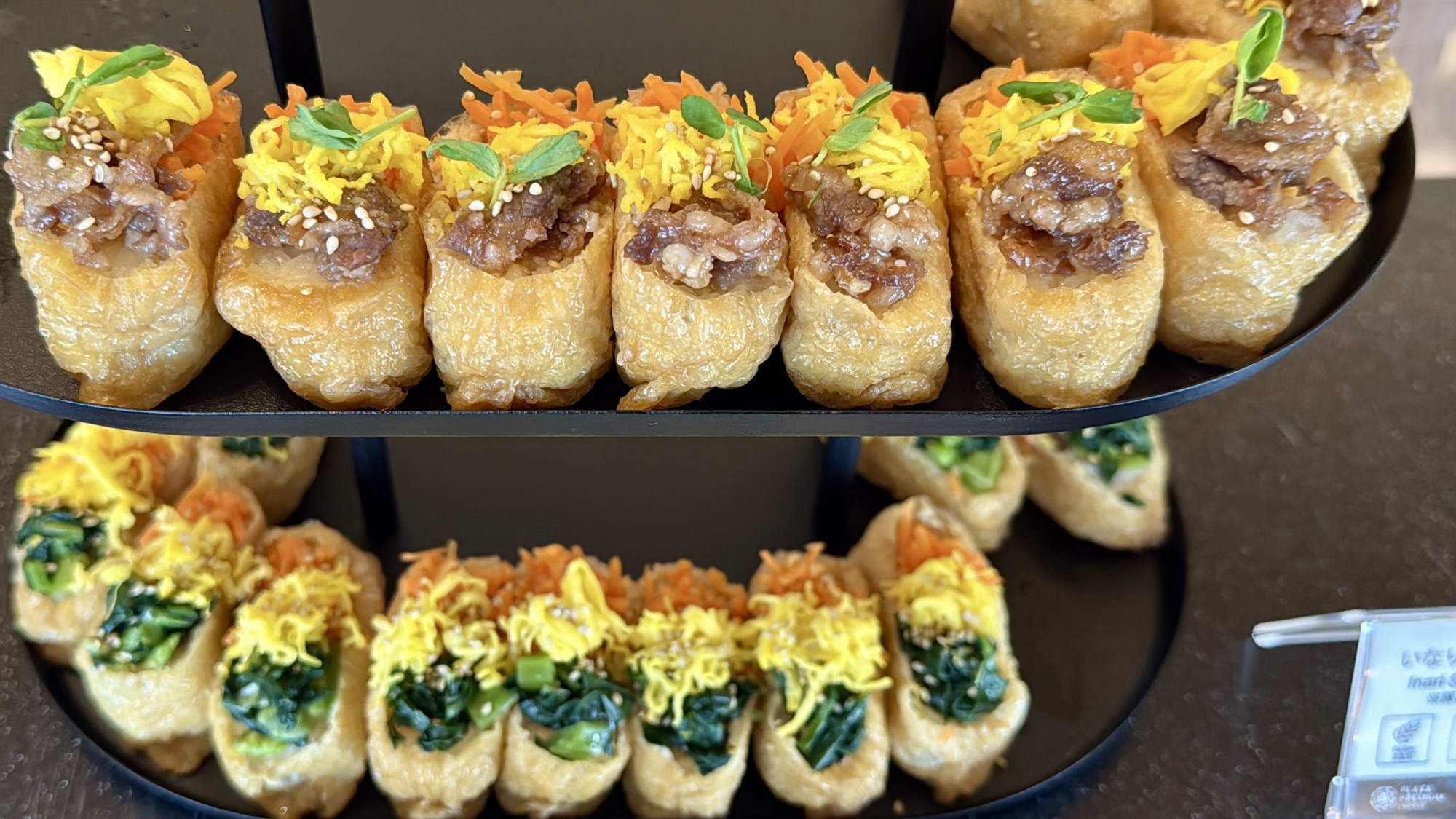 The Food – The catering out of Nagoya was a culinary delight. To start, I enjoyed a glass of Chanoine Freres Brut champagne, a high-quality selection that retails for around $45 a bottle, served with a package of Japanese rice crackers.