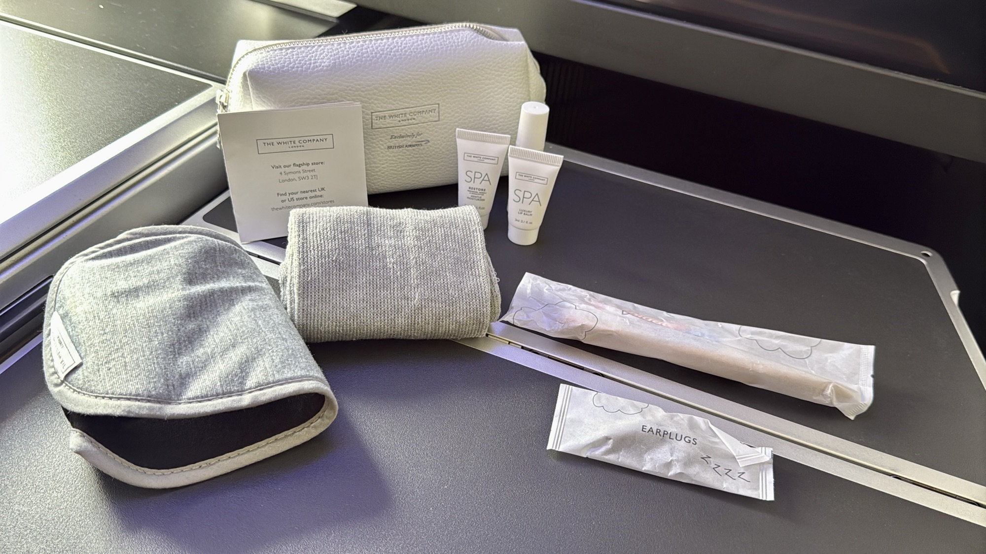 The Amenities – BA doesn’t provide pajamas or slippers in business class, but the White Company amenity kit (in a sleek leather pouch) was well designed. The bedding was excellent, complete with a mattress pad for added comfort. Lavatories were kept clean and stocked with basic toiletries throughout the flight.